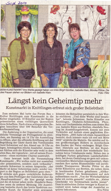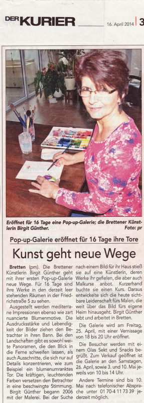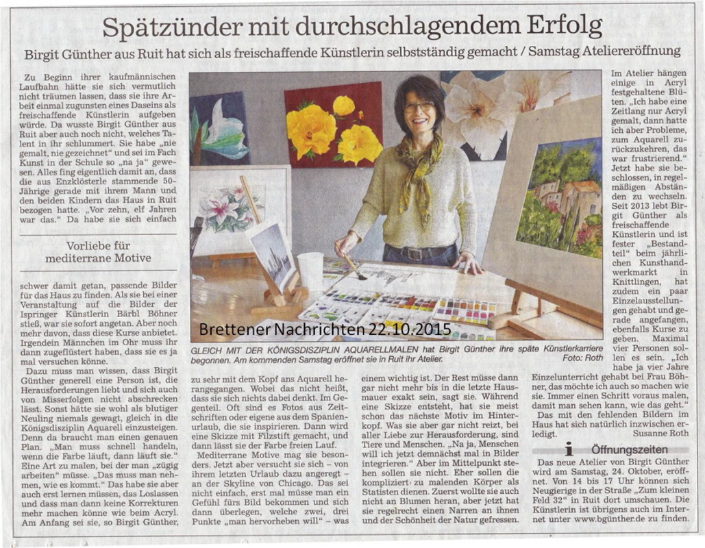 Ateliereröffnung - Brettener Nachrichten - Okt 2015